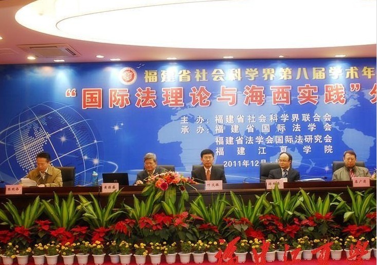 2011年12月18日,省社科界第八届学术年会“国际法理论与海西实践”分论坛在我院举行。省人大法工委主任游劝荣、台湾政治大学黄源盛教授,院领导叶文振、屈广清出席论坛开幕式。图为论坛开幕式。