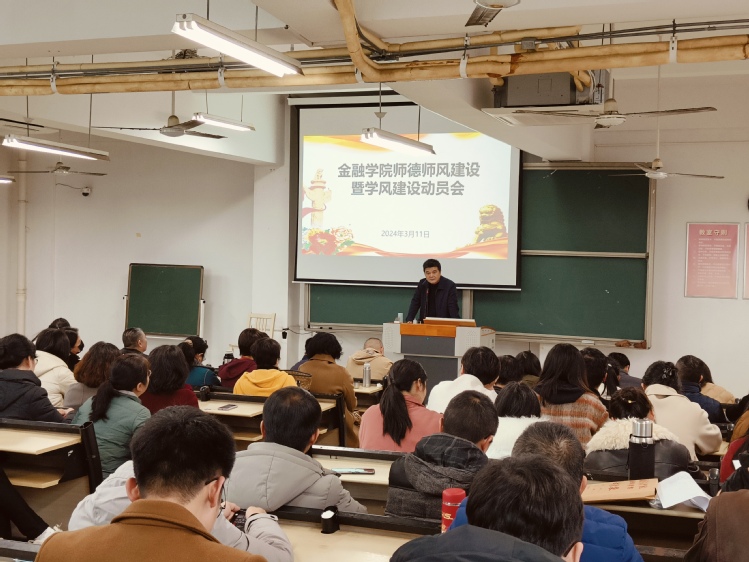 3月11日下午,金融学院在5B407召开师德师风建设暨学风建设动员会,全体教职工、班级班长参加了会议,会议由学院党委书记郭敏峰主持。