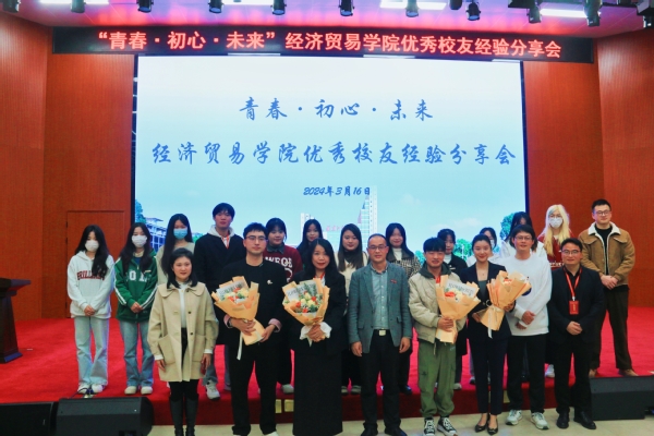 在九号楼一楼报告厅举行以“青春●初心●未来”主题的校友经验分享会。会上,学院1993级公共关系专业校友、福州曼丹职业技能培训学校校长郑晓琦,2012级电子商务专业校友、福州全球卖电子商务有限公司法人代表卢涛从创业经历和体会、就业技能培训、面试礼仪等方面为在座一百余名师生做了精彩的分享,对进一步提升大学生的学习动力,合理规划职业发展具有促进意义。