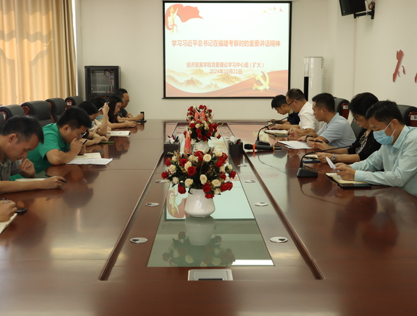 2024年10月21日,经济贸易学院党委书记毛香銮主持召开学院党委理论学习中心组(扩大)会议,专题学习研讨习近平总书记在福建考察时的重要讲话精神。学院党委班子成员、支部书记、辅导员、系主任、实验室负责人参加会议。