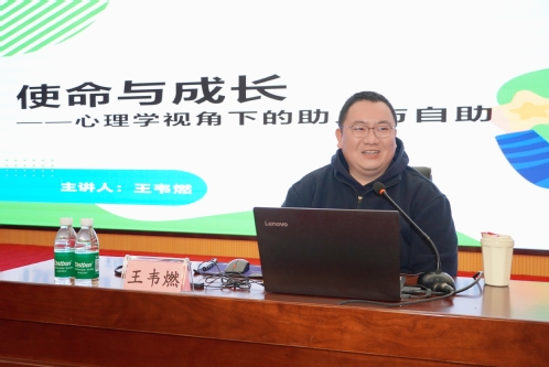 为进一步提高辅导员、班级心理委员和宿舍心理信息员识别与应对大学生常见心理疾病的能力,提升心理助人与自助能力,结合5.25大学生心理健康文化节相关工作安排,3月31日晚,我校特邀国家二级心理咨询师、国家二级职业指导师王韦燃作“使命与成长—心理学视角下的助人与自助”心理健康专题讲座。