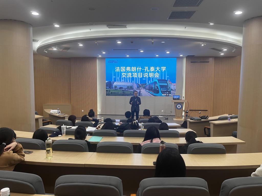 3月24日,外国语学院法语系成功举办法国弗朗什-孔泰大学(Université de Franche-Comté)交流学习项目线上说明会。本次活动特邀该校国际交流中心负责人Lucie Guy女士担任主讲,面向法语专业2023级和2024级学生详细解读项目内容,并开展互动交流。