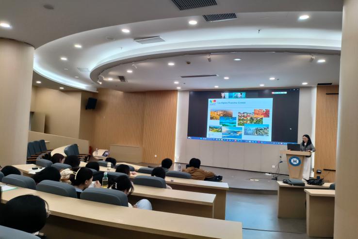 Lucie Guy女士系统介绍了弗朗什-孔泰大学的办学特色、学习环境、交流项目的课程设置及申请流程。她特别强调,该项目涵盖语言强化和专业课程及文化社会实践,旨在帮助中国学生沉浸式体验法国高等教育,提升跨文化沟通能力。