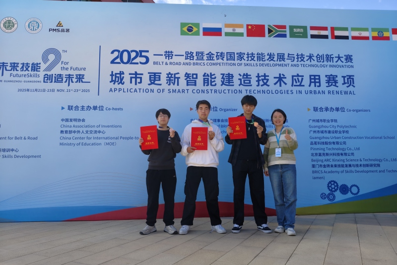 11月21日至23日,2025一带一路暨金砖国家技能发展与技术创新大赛——城市更新智能建造技术应用赛项全国总决赛在广州市成功举办。经过激烈角逐,我校工程学院学生萧杨烨、朱智岭、黄胤堃(指导老师:陈颖)凭借出色的专业能力和稳定的现场发挥,最终荣获本科组三等奖。